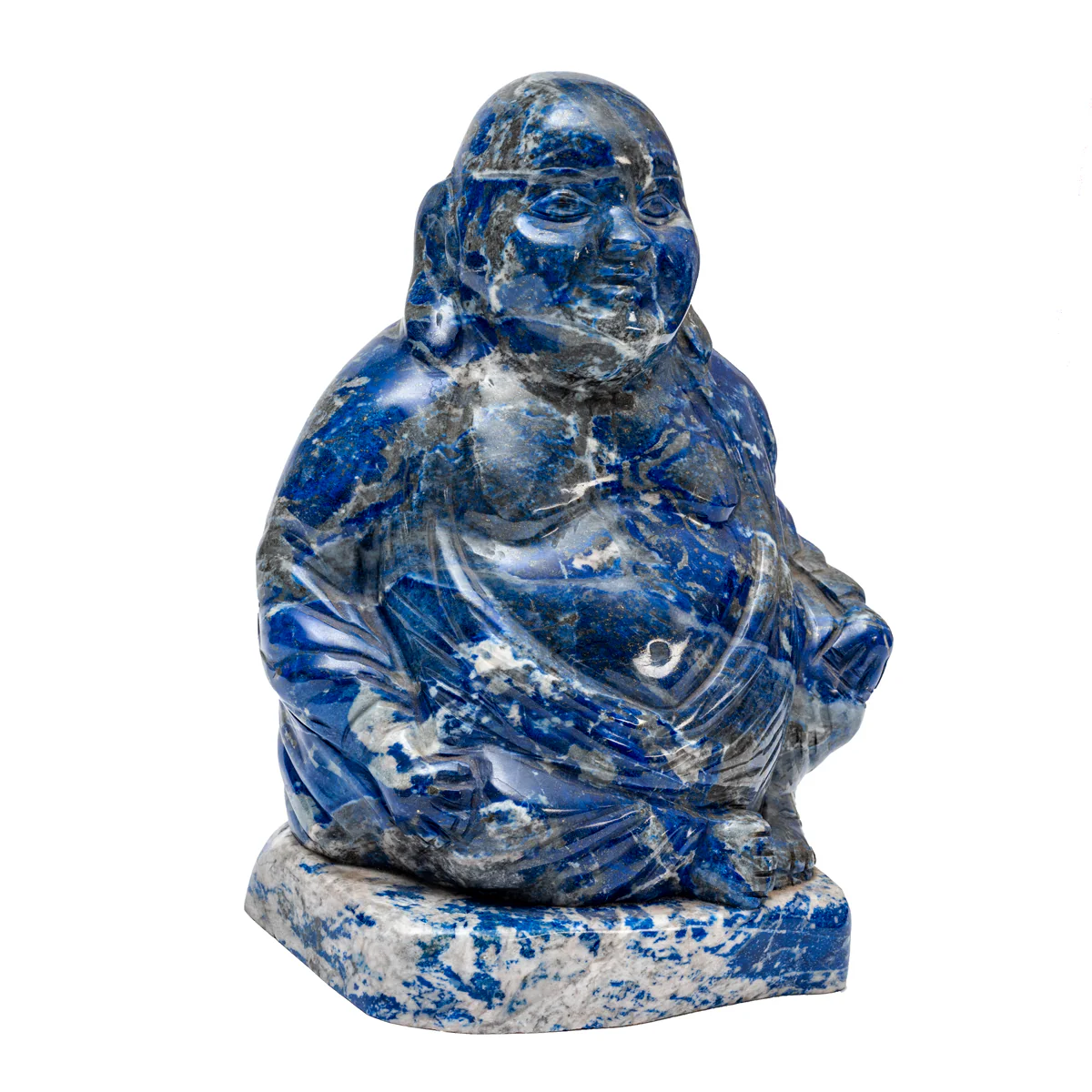 This exquisite, handcrafted Buddha statue is a masterpiece of artistry, carved with intricate detail from rich blue lapis lazuli, sourced directly from Chile. Each feature is meticulously sculpted, capturing the serene essence of Buddha and bringing a touch of tranquility to any space. This unique piece is not just a decoration but a statement of elegance and spiritual harmony, perfect for enhancing the beauty of your home or office.